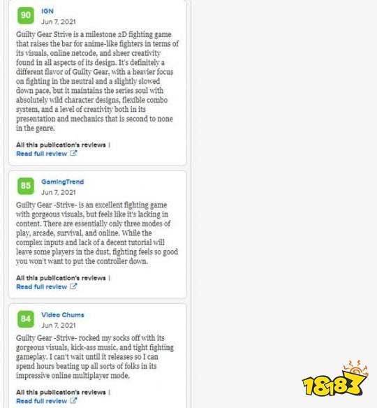 Arc System Works新作《罪恶装备:Strive(GUILTY GEAR -STRIVE-)》将于本周五(6月11日)正式发售,目前游戏媒体评分已经解锁。截止发稿时,游戏PS5版在Metacritic共收录7家媒体评测,全部给予好评,游戏总体均分90分,目前来看各媒体对游戏品质赞赏有加,就不知玩家上手后的实际体验如何了。