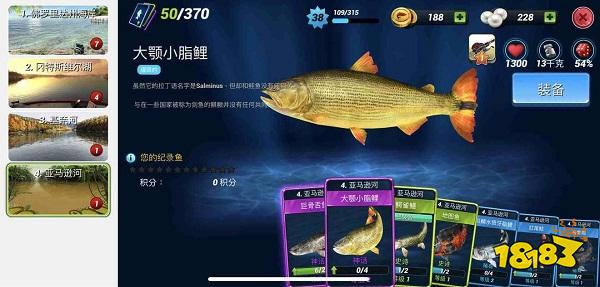 在蓝色区域,选择更换成任务里需要的鱼类。这个任务要求“大颚小脂鲤“,在你的鱼饵卡片里找到,并将他装备起来!