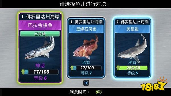 当系统为你找到对手,就可以选择鱼儿来和对方进行对决了!你可以在3种不同的鱼中挑选1条你最有把握获得胜利的鱼!