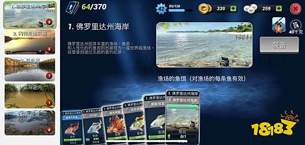 像是进入游戏后前往的第一个钓场,有着丰富鱼类的【佛罗里达州海岸】