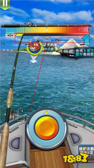 3、长按下方按钮崩紧鱼线,然后松开,以此往复积攒怒气