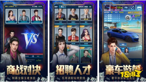 这是款模拟霸道总裁的经营类手游,玩家要经营好几家大型公司,还要培训公司内的员工,雇佣美女秘书帮助自己打理公司。你也可以用钱去投资其他项目,如果投资的项目赚钱了,就可以再开几家公司,如果亏本了也可以总结经验。