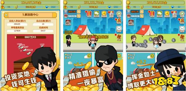 这是一款模拟富翁的养成类游戏,玩家的身份是有钱的富二代,从父亲的手中继承了很多的资金,你可以在城市中投资房地产,也可以买下一栋大楼出租出去,玩这款手游可以真实感受到当有钱人的乐趣。